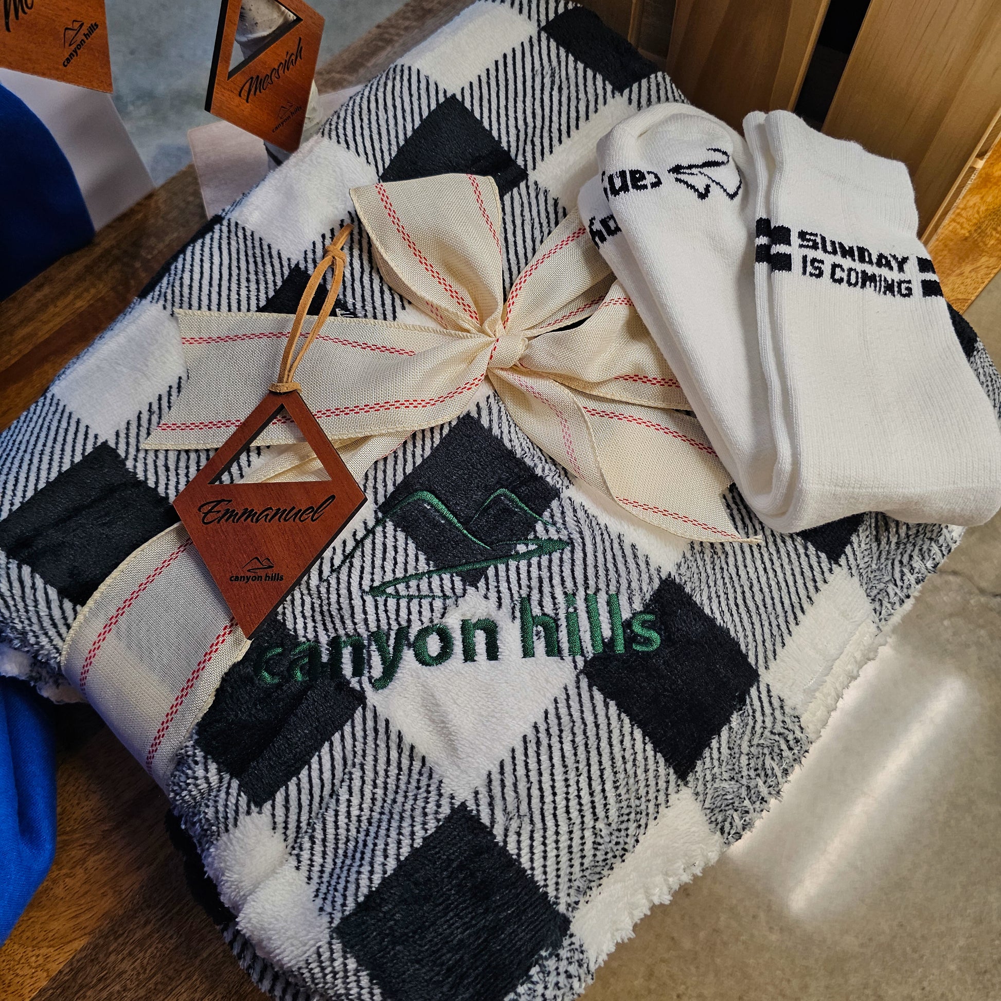 Snuggle up with this cozy embroidered Canyon Hills blanket.